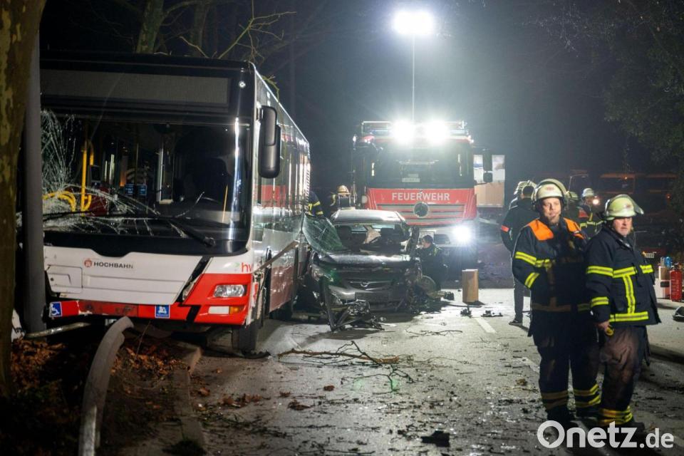 Dabei geriet sein Wagen zwischen einen Linienbus und ein weiteres Fahrzeug und wurde eingeklemmt. Dem Sprecher zufolge erlitten drei Menschen im Bus sowie drei Insassen des Wagens leichte Verletzungen oder standen unter Schock. Der Fahrer selbst wurde im Wagen eingeklemmt und musste von Einsatzkräften befreit werden. Er kam leicht verletzt ins Krankenhaus.