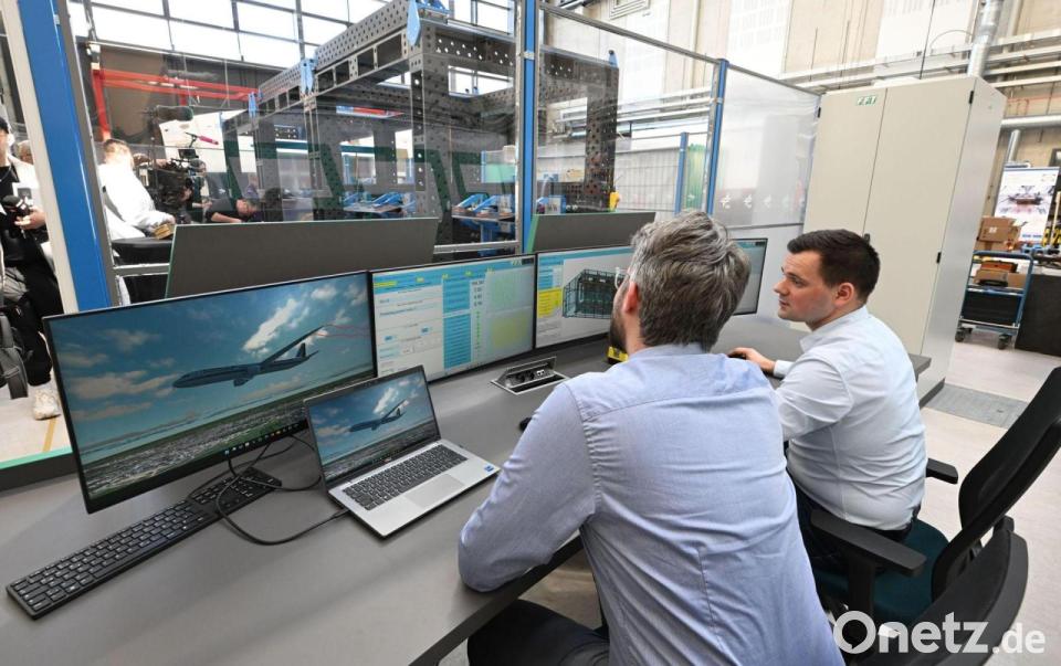 Der sieben Meter lange Prüfstand steht mitten in einer großen Werkshalle. Die Forscher sitzen vor vier Monitoren, dahinter erstreckt sich die Anlage. Ein Test dauere wenige Minuten, sagte René Hollmann, wissenschaftlicher Mitarbeiter beim DLR-Institut für Flugsystemtechnik.