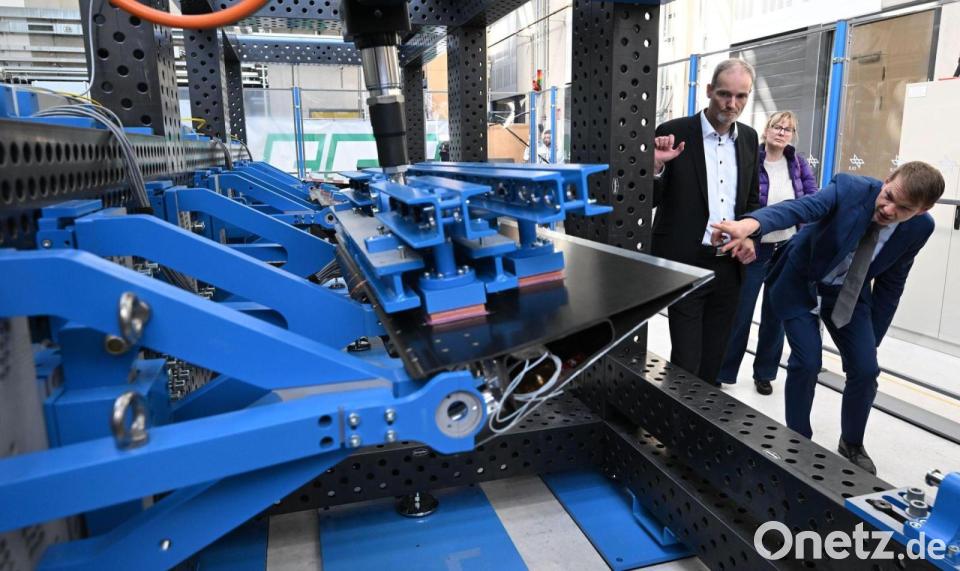 Das Projekt „WISDOM“ wird vom Bundeswirtschaftsministerium mit mehr als zehn Millionen Euro finanziert. Seit vier Jahren tüfteln Forscher von verschiedenen DLR-Instituten an dem System, nun wird der Prüfstand in Betrieb genommen. Das Ziel: Die Wissenschaftler sollen besondere Steuerflächen entwickeln, die wichtig für klimaverträgliches Fliegen sind.