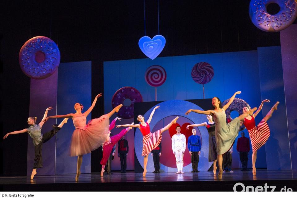 Über die bestens bekannte Handlung müssen nicht viele Worte verloren werden: Barbara Buser hat die Geschichte leicht umgeschrieben und ihr einen märchenhaften Zauber verliehen – eine Überraschung, die gelingt. Das Bühnenbild und die Kostüme (verantwortlich: Annette Mahlendorf) entlocken dem Publikum auch den ein oder anderen Schmunzler: Beim „Arabischen Tanz“ versteckt sich Clara in einer überdimensionalen Kaffee-Tasse, beim Betreten der Zuckerburg schweben gigantische Lollis und andere Süßigkeiten vor der Decke und besonders die Schlacht zwischen den Mäusen und den Gefolgsleuten des Nussknackers gerät zum Kostüm-Höhepunkt der Inszenierung.