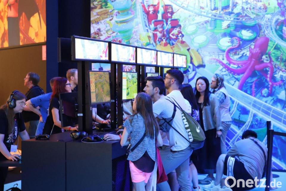 Die weltgrößte Computerspiele-Messe Gamescom hat ihre Türen für Besucherinnen und Besucher geöffnet. Tausende Fans und Fachleute strömten am Vormittag in die Kölner Messehallen, die auf einer Ausstellungsfläche von 230.000 Quadratmetern neue Games und Technik zeigen. Mehr als 1400 Aussteller aus 64 Ländern präsentieren sich dort, das sind 15 Prozent mehr als im Vorjahr. Die Besucher können an Konsolen und Controllern zur Probe spielen.