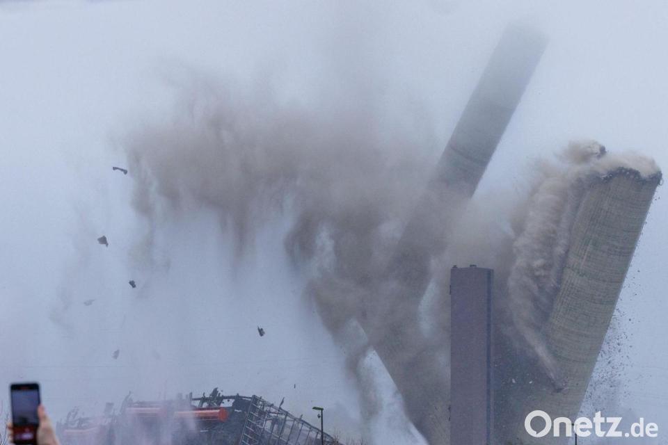 Ein lauter Knall und viel Staub: In Ibbenbüren im nördlichen Westfalen ist der 275 Meter hohe Schornstein des ehemaligen Steinkohlekraftwerks gesprengt worden. Die zahlreichen Schaulustigen konnten allerdings nur einen Teil des Spektakels sehen, denn die obere Hälfte des Schornsteins war von Nebel und Wolken verdeckt. Mit der Sprengung ist die letzte bis Niedersachsen zu sehende Landmarke des früheren RWE-Kraftwerks verschwunden.