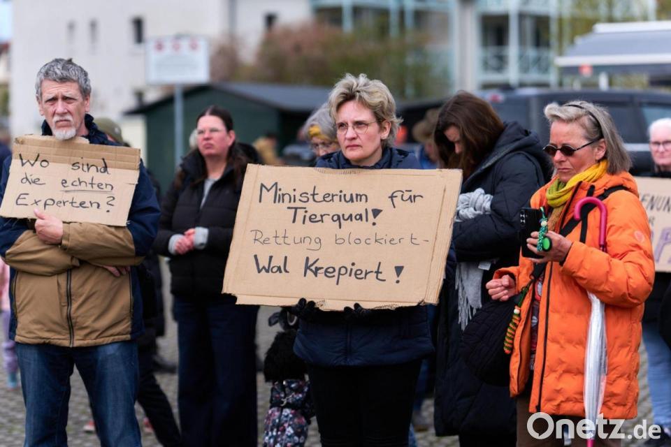 Am Samstagmittag bildeten etwa 150 Menschen im Hafen eine Menschenkette, um für die Rettung des Meeressäugers zu demonstrieren, sagte eine Polizeisprecherin. Einige Stunden später versammelten sich laut Polizei am Kirchdorfer Hafen auf der Insel Poel ebenfalls etwa 170 Menschen, um für die Rettung des Wals einzutreten. Dort sei es auch zu einer körperlichen Auseinandersetzung zwischen zwei Teilnehmerinnen gekommen, woraufhin die Polizei zwei Strafanzeigen wegen des Verdachts der Körperverletzung aufgenommen habe.