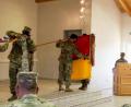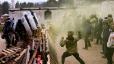 US-Soldaten des 41. Infanterie-Brigaden-Kampfteam verteidigen sich gegen Molotow-Cocktails, während des "Feuerphobie-Trainings" (KFOR-Trainings) am 27. Februar 2020 auf dem Trainingsgelände Hohenfels.