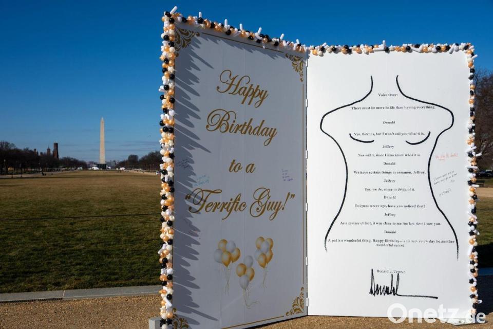 Geburtstagsgrüße, die US-Präsident Donald Trump vor mehr als 20 Jahren an den verurteilten und mittlerweile gestorbenen Sexualstraftäter Jeffrey Epstein geschrieben haben soll, sind in der US-Hauptstadt Washington als große Installation aufgetaucht. Eine Gruppe, die sich „The Secret Handshake“ nenne, habe die etwa drei Meter hohe Reproduktion auf der National Mall - der Promenade zwischen dem Kapitol und dem Lincoln Memorial - aufgestellt, berichtete der US-Sender CNN. Epsteins Geburtstag ist am 20. Januar.