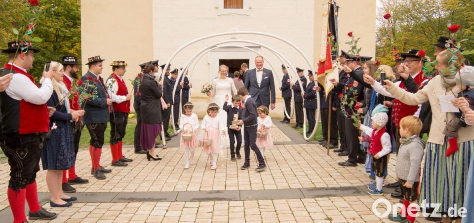 Mit seinem Heiratsantrag im XXL-Format auf einem Feld bei Kümmersbuch hatte Jungbauer Florian Weiß im März für Aufsehen gesorgt. Jetzt hat der 24-Jährige seine Nadine (23), eine geborene Mutzbauer, in der Frohnbergkirche geheiratet. Spalier standen für das Paar die Rosenberger Kirwaleit, der Katholische Burschenverein und die Mädchengruppe Hahnbach sowie die Feuerwehr Kötzersricht.