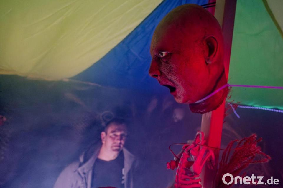 Der Weg des Grauens führt durch Flur, Keller, Garten, drei Zelte und Garage, alles bevölkert von insgesamt 20 Erschreckern, die Wagner teils aus seinem Freundeskreis rekrutiert, teils über ein Casting anwirbt. Den ganzen Aufwand betreibt er nur für einen einzigen Abend. Der Schauder-Spaß ist so beliebt, dass man die kostenlosen Karten online vorbuchen muss – 653 Personen haben das für diesen Freitag schon getan.