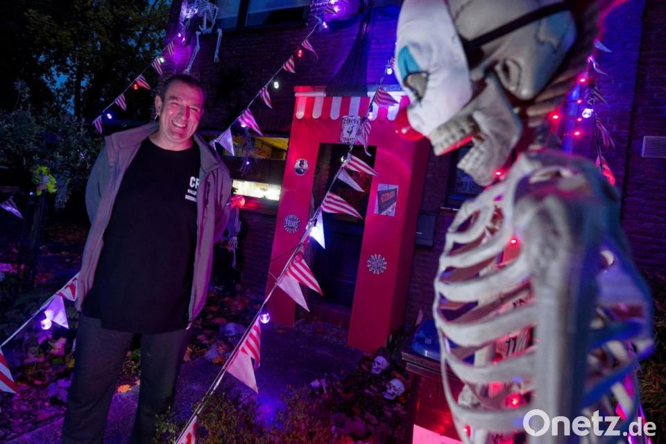 Sven Wagner (47), von Beruf Anlagenmechaniker für Heizungs- und Klimatechnik, ist einer der größten Halloween-Fans in Deutschland. Jedes Jahr stellt er sein Haus unter ein neues Motto: einmal war es das „Insane Hospital“, ein anderes Mal das „Holmes Hotel“, benannt nach dem frühen amerikanischen Serienmörder Henry Howard Holmes (1861-1896).