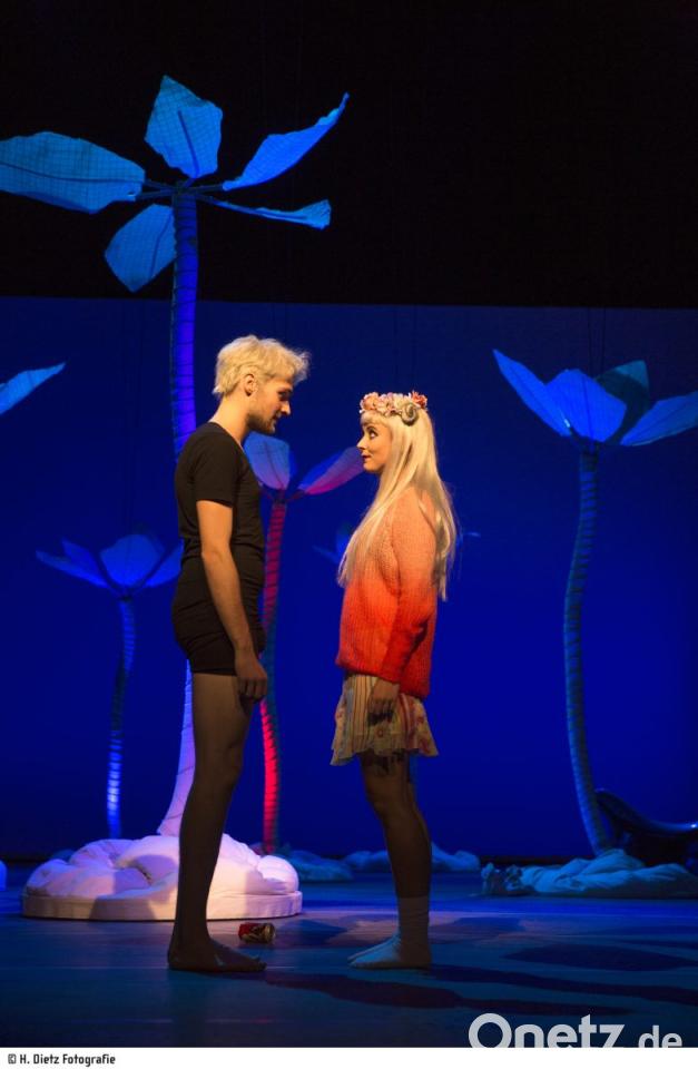 Trotz oder gerade wegen all des Spotts verkommt die zugrundeliegende Liebesgeschichte nicht zur Rahmenhandlung. Den mitgerissenen Zuschauer erfasst von Beginn an ein tiefer Eindruck der Poesie und Melancholie, obwohl die strenge Interpretation des Stoffs ihm sowie Leonce und Lena nur einen kurzen, aber ungeheuer romantischen Moment gönnt. Als die beiden sich nachts unerkannt fast wie in einer Traumsequenz treffen, ist es Liebe auf den ersten Blick. Marina Schmitz verkörpert die nach Emanzipation strebende Prinzessin ebenso authentisch wie Jannik Rodenwaldt den bornierten Prinzen. Beide finden die Balance zwischen Identitätssuche, Trotz und der wachsenden Angst, so zu werden wie ihre Eltern.