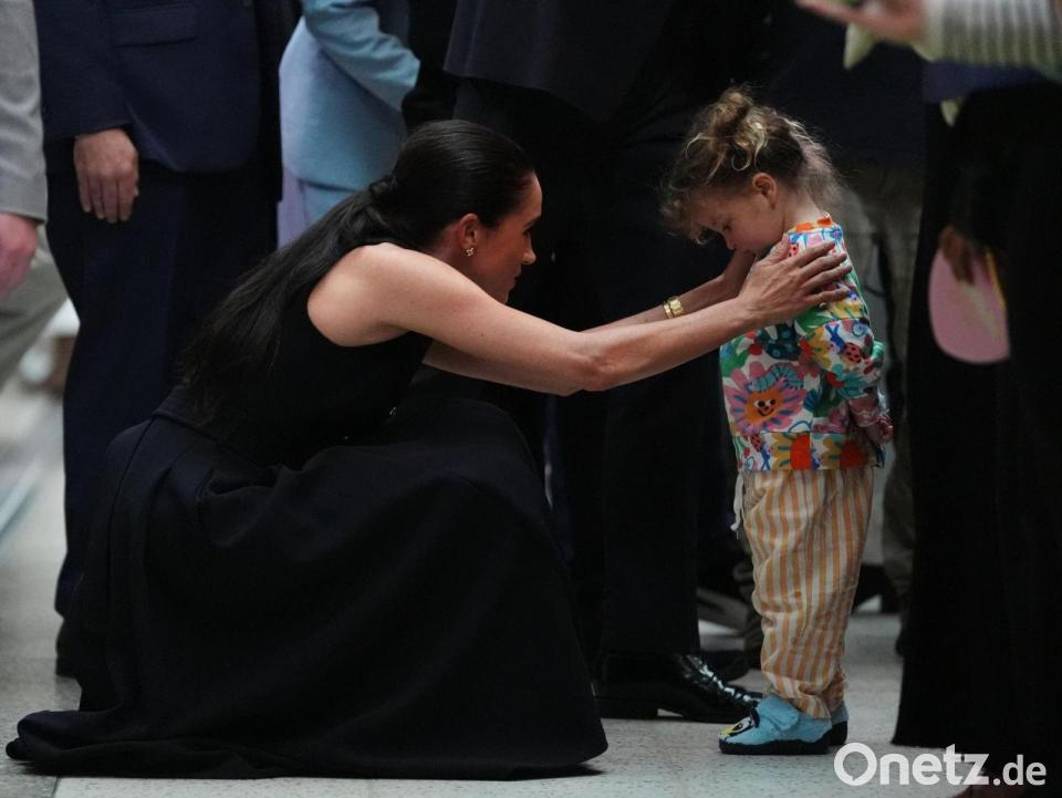 Die beiden wurden von Hunderten Schaulustigen begrüßt, als sie einen Stopp im Royal Children’s Hospital in Melbourne einlegten. Wie die britische Nachrichtenagentur PA berichtete, lagen sich Meghan und eine vierjährige Patientin namens Lily in den Armen, nachdem das Kind ein selbstgeschriebenes Willkommensplakat und Blumen überreicht hatte. Harry schloss die Mutter einer 13 Jahre alten Patientin in die Arme.