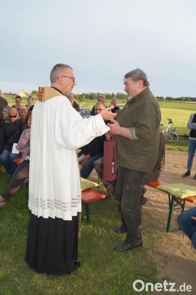 Der tschechischen Nachbarort spielt auch bei der Erneuerung des Kreuzes eine besondere Rolle. Deshalb kamen zur Maiandacht auch viele Besucher aus Starý Hrozňatov: Jagdfreunde von Hubert Rustler feierten das Gemeinschaftswerk auch im Anschluss bei einer Brotzeit in der Remise in Hatzenreuth.