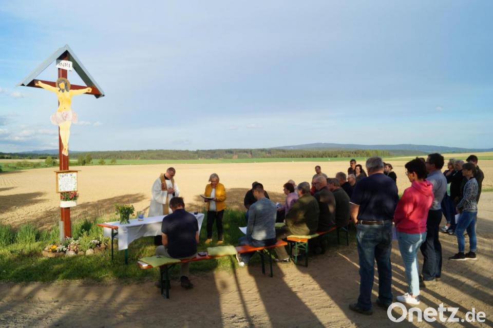 Bei einer Maiandacht am Fußgänger-Grenzübergang bei Hatzenreuth hat Stadtpfarrer Dr. Thomas Vogl ein neues Flurkreuz gesegnet. Es war im März aufgestellt worden. Denn das alte Flurdenkmal war unansehnlich geworden.