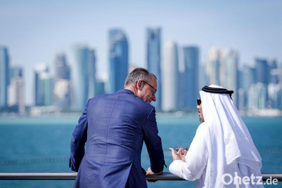 Zweite Station des Kanzlers war Katar, das vor der Fußball-Weltmeisterschaft 2022 noch unter anderem wegen desaströser Arbeitsbedingungen auf den WM-Baustellen scharf kritisiert wurde. Merz lobte das kleine, aber sehr reiche Emirat nun als „sehr verlässlichen“ Partner. „In einer Zeit globaler wirtschaftlicher Umbrüche, geopolitischer Unsicherheiten und technologischer Transformation konzentrieren sich Deutschland und Katar bewusst auf Dialog, Diversifizierung und Investitionen in die Zukunft.“