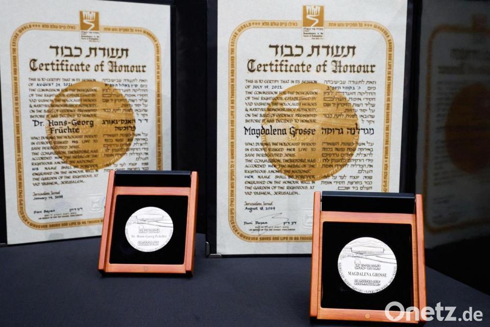 Mit Magdalena Große und Hans-Georg Früchte hat der Staat Israel zwei Menschen aus Bayern posthum als „Gerechte der Völker“ ausgezeichnet - der Titel wird Menschen verliehen, die Jüdinnen und Juden vor Verfolgung gerettet haben. Der Titel ist verbunden mit Yad-Vashem-Medaillen, die in der bayerischen Landesvertretung in Berlin vom israelischen Botschafter Ron Prosor an die Hinterbliebenen der beiden Geehrten übergeben wurden.