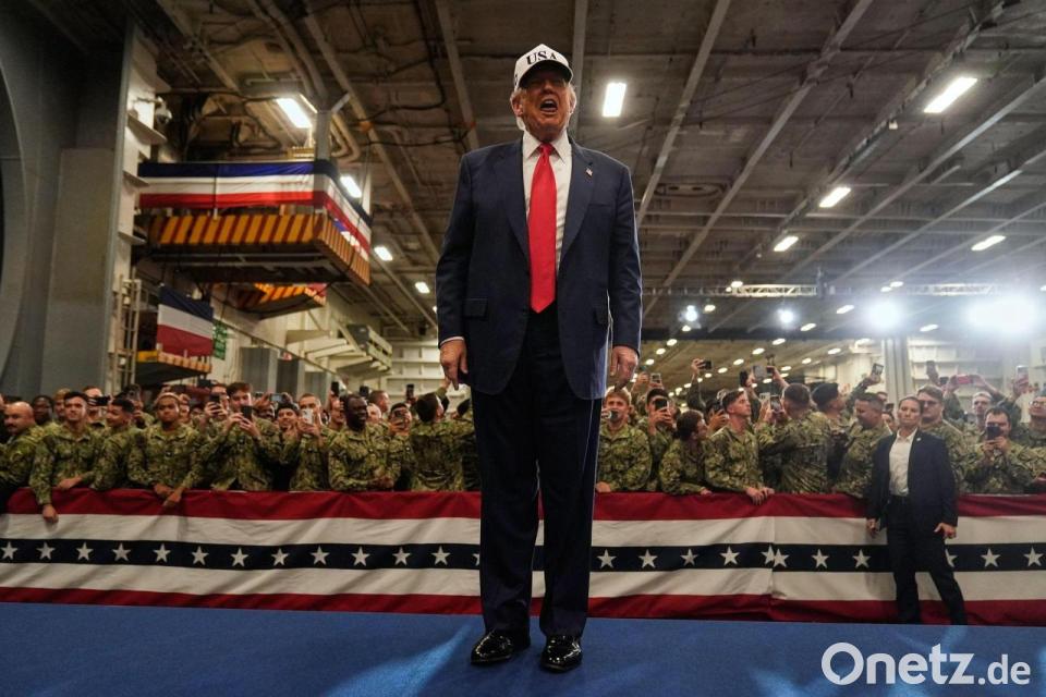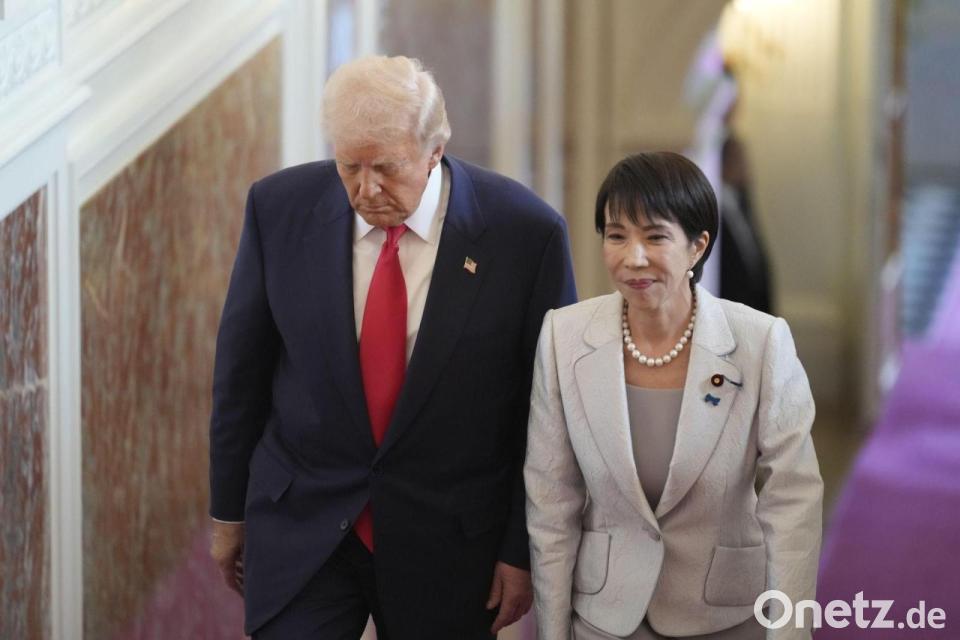 Trump hob zum Auftakt ihres Treffens in Tokio anerkennend hervor, dass Japan unter Takaichis Führung die militärischen Kapazitäten ihres Landes „ganz erheblich“ erhöhe. Die USA hätten von Japan bereits Bestellungen „für eine sehr große Menge neuer militärischer Ausrüstung erhalten“, sagte Trump. Takaichi hatte kürzlich zum Auftakt ihrer Amtszeit angekündigt, den Verteidigungsetat bis März auf zwei Prozent des Bruttoinlandsprodukts anzuheben. Damit würde das Ziel zwei Jahre früher erreicht als bislang geplant.