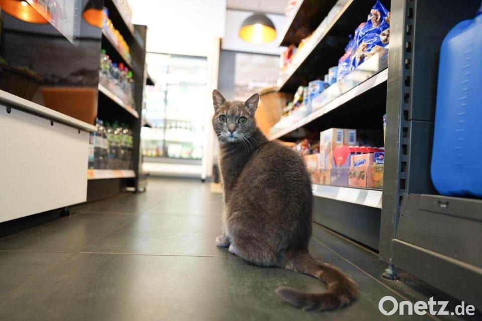 Am Eingang des Markts weist ein Schild auf die Katze hin. Allergiker können sich dort kostenlos eine Maske ausleihen, sagt Scheel. Während der Woche kümmern sich die Mitarbeiter des Markts alle zusammen um Lotti. Am Wochenende koordinieren sich die Kollegen so, dass Lotti jeden Tag gut versorgt ist.