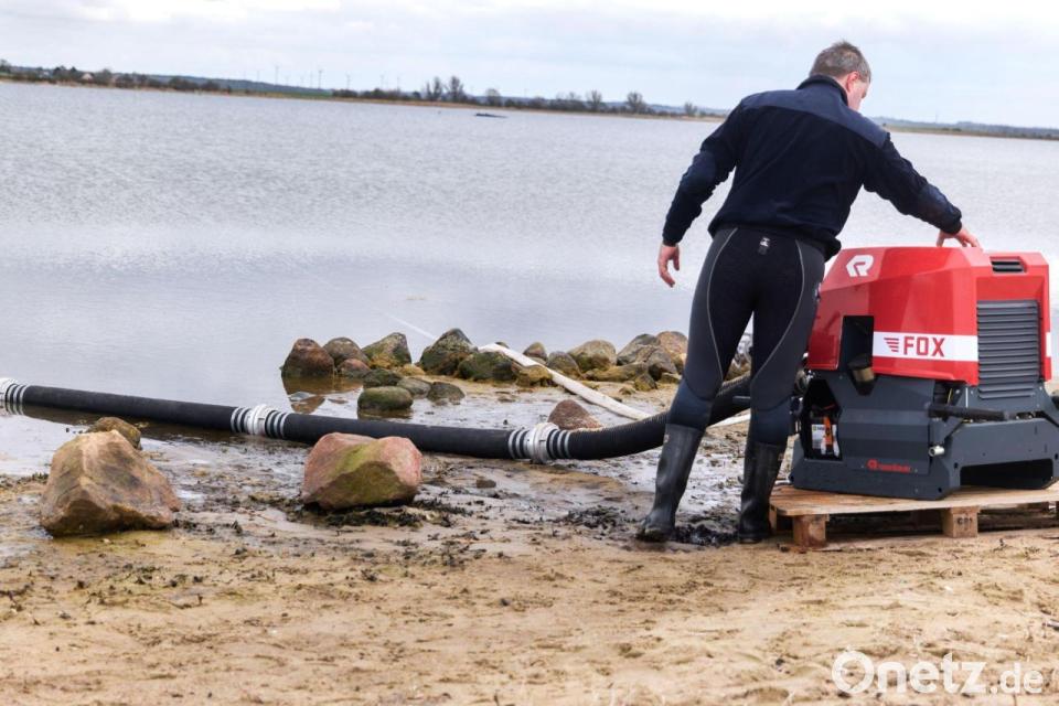 „Da sich die Windverhältnisse geändert haben, wurde nach eingehender Beratung entschieden, die Sprinkler so zu versetzen, dass die Befeuchtung weiter gegeben ist“, sagte Backhaus. Denn wegen des Nordwestwindes gebe es deutlich niedrigere Wasserstände. Dadurch rage das etwa 1,70 Meter hohe Tier noch weiter aus dem Wasser, obwohl es sich durch sein Eigengewicht von etwa 12 Tonnen inzwischen schon 50 Zentimeter in den Boden eingegraben habe.
