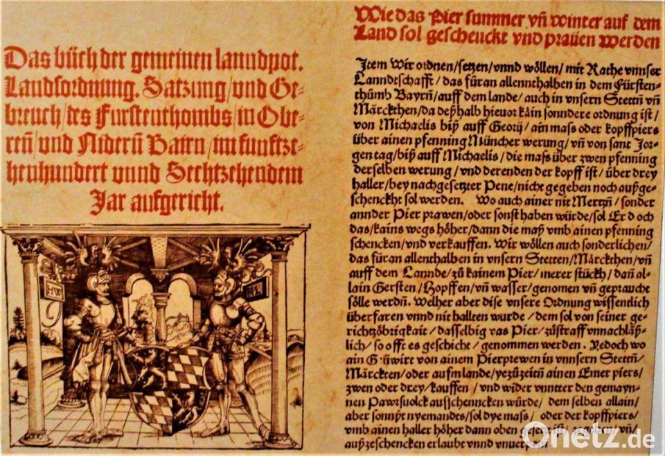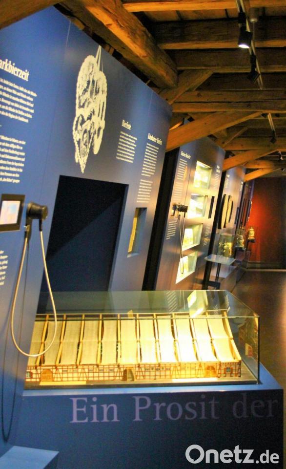 In diesen Kontext passt auch ein ganz besonderes Exponat der Ausstellung – nämlich eine Amphore, die in einem 3000 Jahre alten Grabhügel bei Kasendorf (Landkreis Kulmbach) gefunden wurde. Diese gilt als ältestes Indiz für Bierbrauen in Deutschland, denn Inhalt der Amphore waren Reste von „Bierbrot“ und Eichblättern: Bierbrot verwendete man üblicherweise als Grundsubstanz – der Sauerteig aus Getreide ließ sich gut vergären. Und Eichenblätter waren vor der Entdeckung des Hopfens ein geeignetes Mittel, um das Getränk haltbar zu machen.