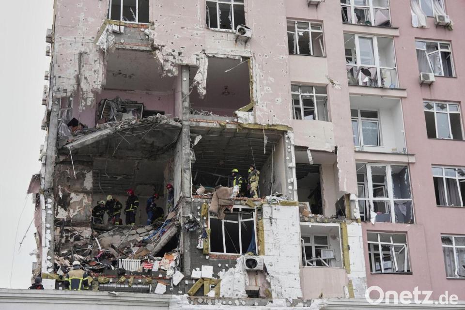 In der ukrainischen Hauptstadt Kiew sind bei schweren russischen Luftschlägen nach Angaben von Bürgermeister Vitali Klitschko mindestens ein Mensch getötet und mehr als zwei Dutzend weitere Bewohner verletzt worden. Klitschko berichtete in seinem Telegram-Kanal nach den Angriffen mit Drohnen und Raketen von rund 30 Verletzten und von Bränden in zwei Hochhäusern sowie anderen Gebäuden. Die Zahl der Verletzten erhöhte sich im Verlauf des Morgens und Vormittags immer weiter. In der Hauptstadt fiel in Tausenden Haushalten die Heizung aus. Es gab auch Stromausfälle. Im Kiewer Gebiet starb laut Behörden eine 47-jährige Frau bei den Angriffen.