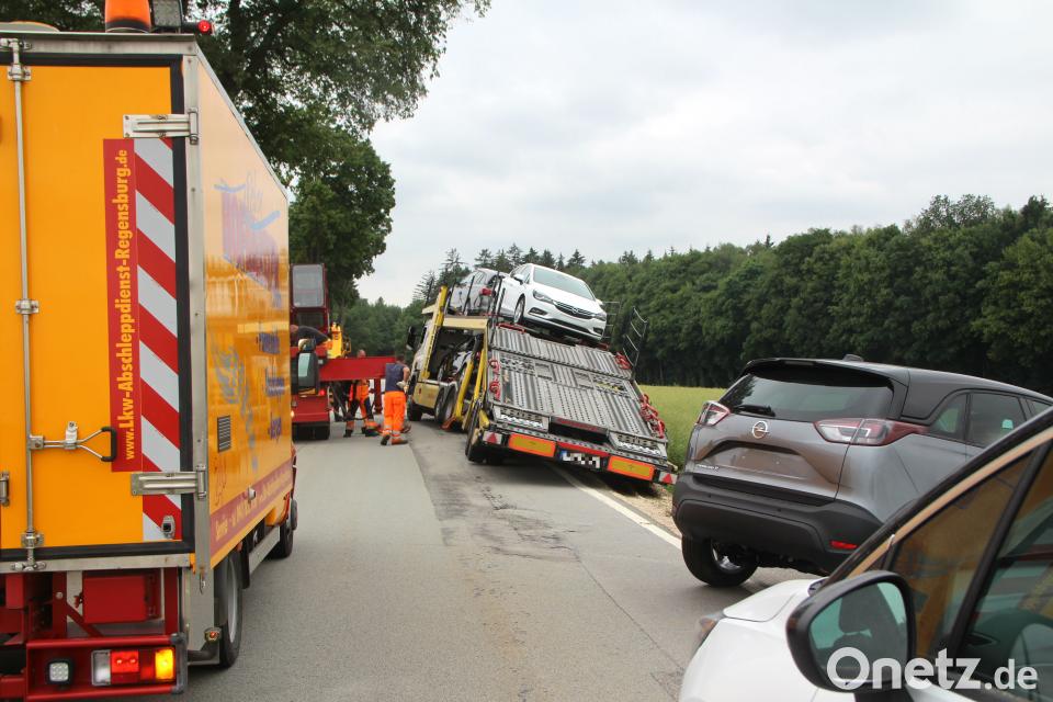 Viel Glück hatte ein Lastwagen-Fahrer auf der ST 2233 zwischen Painten und Hemau. Der vollbeladene Autotransporter sank rund 30 Zentimeter ein und neigte sich bedrohlich stark auf die Seite. Der Fahrer konnte sein Gespann noch rechtzeitig zum Stehen bringen, sodass der Sattelschlepper noch genügend Gegengewicht hatte, um nicht zu kippen. Die acht neuen Opel-Fahrzeuge blieben nach ersten Erkenntnissen nahezu unbeschädigt. Am Mittwochmittag war die Staatsstraße komplett gesperrt. Eine Spezialfirma musste anrücken, um den Laster zu sichern und wird ihn am Nachmittag bergen.