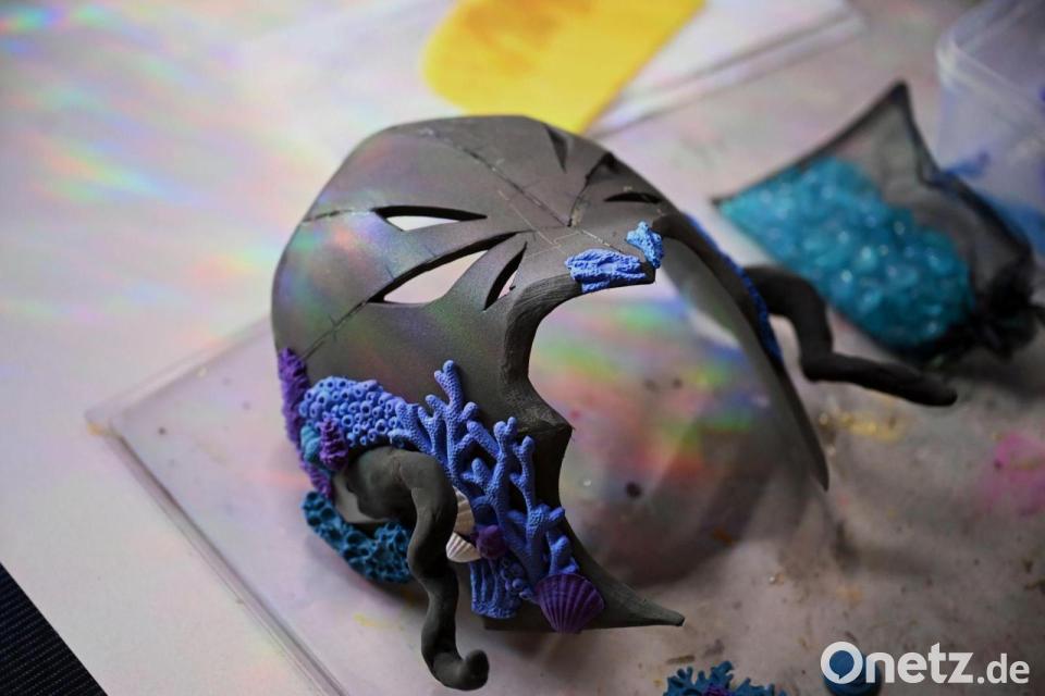 Die Utensilien für ihre Basteleien haben sich bei ihr über die Jahre angesammelt: Zahlreiche Pinsel, Stifte und Scheren stehen neben ihrem Arbeitstisch. Ob Ornamente aus Epoxidharz oder Masken aus einer leichten Modelliermasse: Toni fertigt fast alles in Kleinstarbeit per Hand an - wie viele andere Cosplayer. „Bei mir ist es halt so, dass ich eher Nischensachen mache“, sagt Toni. „Ich muss fast alles selber machen, weil es das nicht zu kaufen gibt.“