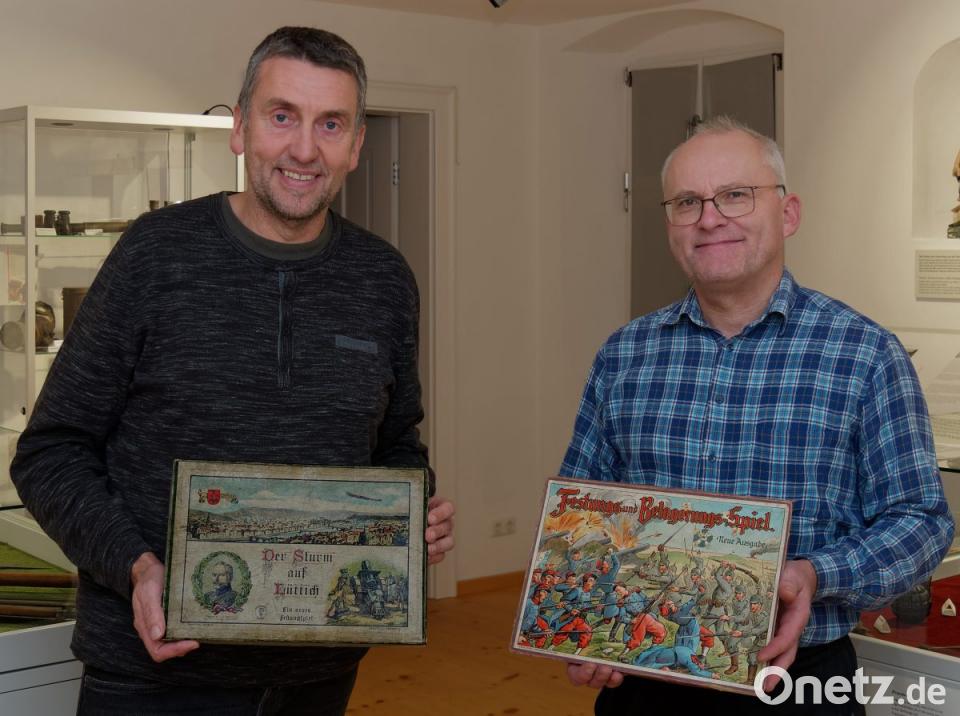 „Der Sturm auf Lüttich“ als Würfelspiel um die Eroberung der belgischen Festung ist ein besonders rares Stück, da die Herstellung des Spiels an die deutschen Erfolge der ersten Kriegswochen angelehnt ist. Die „Großen der Zeit“ auf Ausmalschablonen für die künstlerische Erziehung der Kinder, Modeln aus Holz zur Herstellung von Spekulatius-Gebäck oder Spielesammlungen und künstliche Christbäumchen für den Einsatz im Schützengraben, erinnern ebenfalls an dieses schreckliche Kapitel unserer Geschichte.