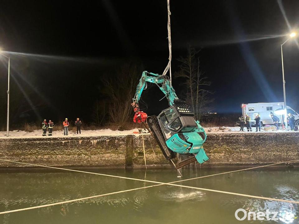 Der Mann arbeitete einem Polizeisprecher zufolge am Donnerstag auf dem Trenndamm einer Schleuse in Untergriesbach. Wegen Glätte sei er mit seinem Bagger ins Rutschen gekommen und umgekippt, hieß es. Er sei etwa drei Meter tief über die Kaimauer ins Wasser gefallen und mit seinem Fahrzeug versunken, sagte ein Polizeisprecher. Der Baggerfahrer stieg dem Sprecher zufolge über eine Leiter wieder hinauf.