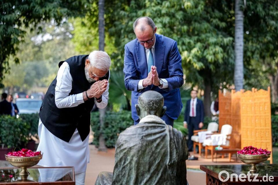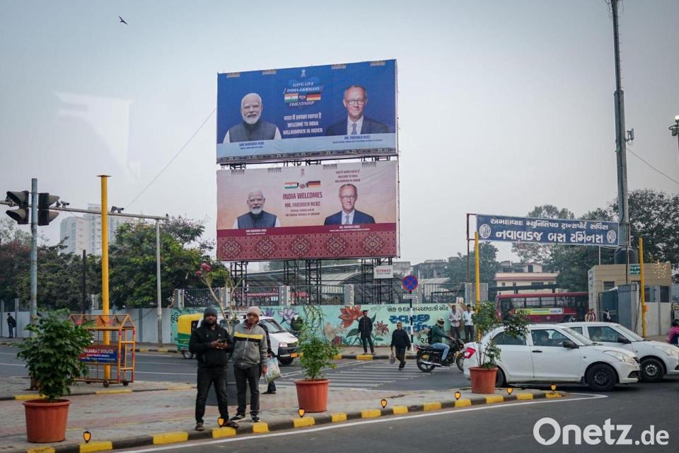 Schon vor der Ankunft des Kanzlers waren die Straßen der Stadt mit ihren acht Millionen Einwohnern gesäumt von großformatigen Plakatwänden mit den Bildern von Merz und Modi. Der indische Ministerpräsident begrüßte ihn an einer frühen Wirkungsstätte des Nationalhelden Mahatma Gandhi, der zwischen 1918 und 1930 in einem Ashram - einer Meditationsstätte - in Ahmedabad lebte und wirkte. Von hier machte er sich auf, Indien durch gewaltlosen Widerstand gegen die britische Kolonialherrschaft zur Unabhängigkeit zu führen. „Dieses Menschheitserbe verbindet Inder und Deutsche als Freunde in einer Welt, die Gandhis Lehre heute wohl nötiger hat denn je“, schrieb er ins Gästebuch.