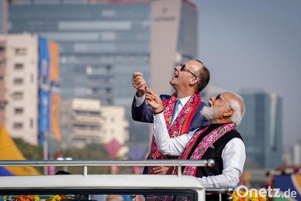 Modi und Merz fuhren anschließend im selben Wagen zum traditionellen Drachenfestival, das den Übergang vom Winter- zum Sommerhalbjahr markiert und bei dem Tausende Papierdrachen in die Luft steigen. Die beiden versuchten aus einem offenen Wagen gemeinsam mehrere Drachen zu lenken. Die Bilder, wie beide an einem Strang ziehen, dürften zum Symbol dieses Besuchs werden.