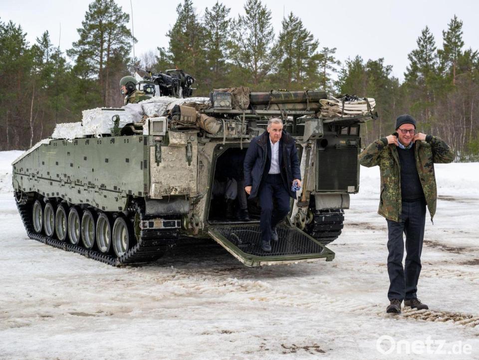Am Nachmittag reiste Merz mit Støre weiter nach Bardufoss, wo sie sich zusammen mit dem kanadischen Premierminister Mark Carney ein Bild von dem Militärmanöver „Cold Response“ von 14 Nato-Staaten in Norwegen und Finnland machten. Merz kam in einer Flecktarnjacke der Bundeswehr auf das zum großen Teil vereiste Übungsgelände.
