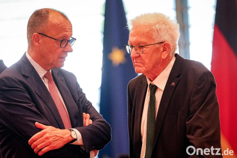 Ministerpräsident Winfried Kretschmann (Grüne) stellte dem Kanzler seine Kabinettsmitglieder vor. Merz trug sich im Anschluss ins Gästebuch des Landes ein. Als Geschenk überreichte der Ministerpräsident einen Globus – weil ein Kanzler ja auch Weltpolitik mache. Im Anschluss nahm Merz an einer Sitzung des grün-schwarzen Kabinetts teil. Er freue sich auf viele Begegnungen, sagte Merz. Er wolle hören, was die Themen des Landes seien. Baden-Württemberg besuche er offiziell als Kanzler als siebtes von 16 Bundesländern.