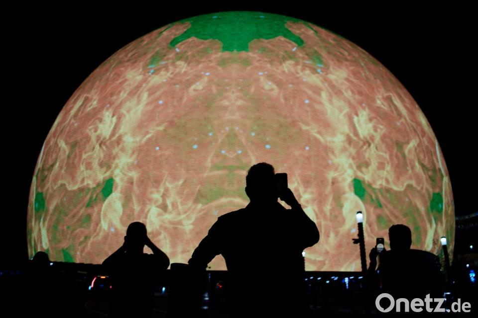 Die Sphere ist nach Angaben der Betreiber die größte kugelförmige Halle der Welt - 111 Meter hoch und knapp 160 Meter breit. Bis zu 20.000 Menschen haben darin Platz. Das Publikum ist von einem riesigen LED-Bildschirm umgeben, dazu können mit modernster Technik spezieller Sound, Wind, Dampf und verschiedene Gerüche erzeugt werden. Die irische Rockband U2 hatte im Herbst 2023 mit einer Konzertreihe die spektakuläre Sphere-Halle eröffnet.