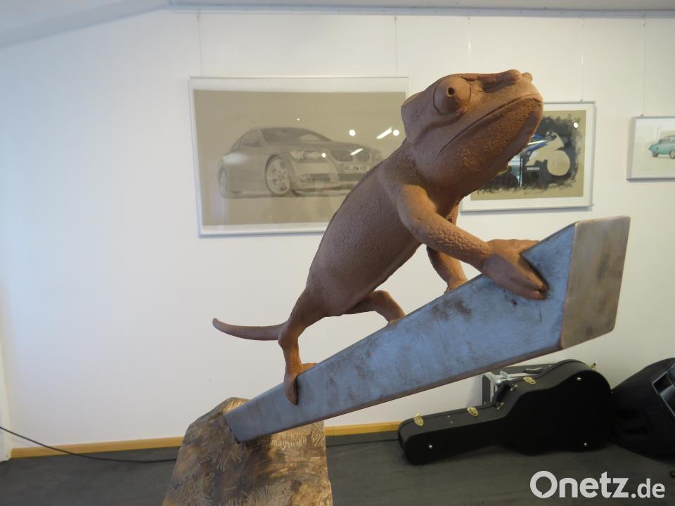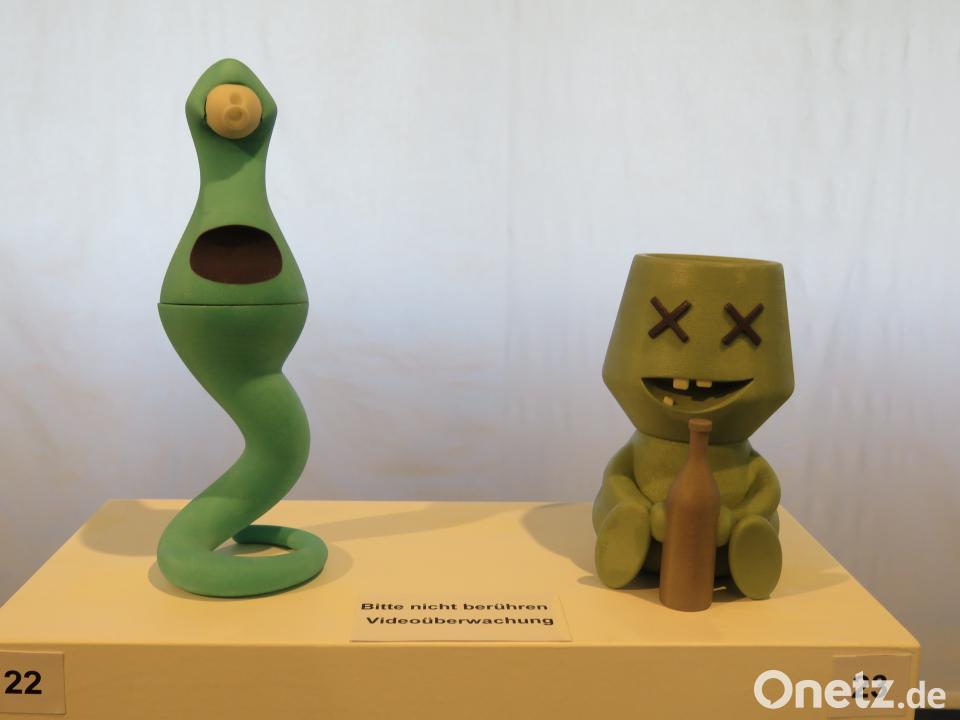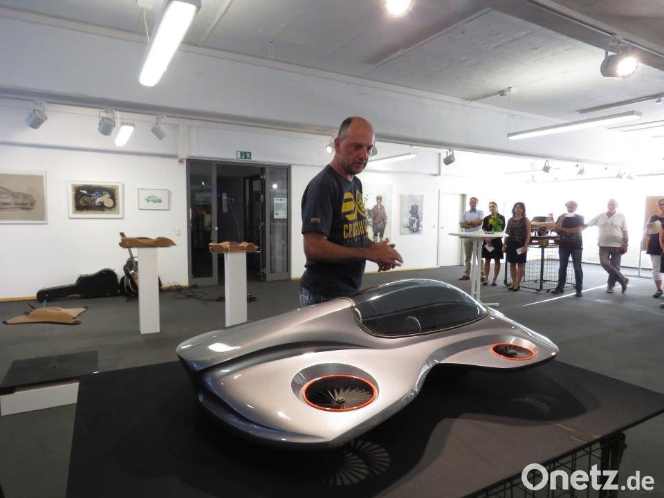 "Die Beobachtung der Natur macht manchen Schülern Probleme", sagt Steidl. Viele Künstler würden beim Malen eine Strategie entwickeln für Augen, Mund, Nasen und Ausdruck. Es ginge aber um das genaue Hinschauen, um dieser Strategie zu entkommen. Natürlich würden die Familien der Schüler die Arbeiten gerne bei sich aufstellen. "Aber Dekoration ist nicht Sinn der Ausbildung." Und der hohe eigene Anspruch könne auch frustrierend sein. Fachlehrer Jürgen Heinl erklärt die Plastiken, darunter Futuristisches wie Fantasiegebilde, unter anderem aus dem Werkstoff Plastilin. Als Metamorphose sieht Schüler Kai Gemeinhardt sein Design eines "Pickup", der sich vom Schiff zum Auto verwandelt. Eine weitere eindrucksvolle Arbeit dieses Schülers ist das autonome Fahrzeug, das an die fliegenden Autos in diversen Science-Fiction-Filmen erinnert. Die Entlastung der Straßen sei Hintergrund dieses Designs. Denn eines Tages, so Kai Gemeinhardts Vision, werde es keine Straßen mehr geben.