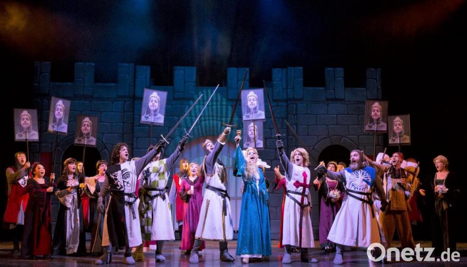 Mit "Always look on the bright Side of Life" - dem Klassiker aus dem Kultfilm "Life of Brian" - lässt sich das Leben gleich deutlich leichter ertragen. Und da findet sich dann auch ziemlich rasch ein Gebüsch, um die Waldritter zufrieden zu stellen. In den 1970ern war es, als ein besonderer Film die Leinwände eroberte - die "Ritter der Kokosnuss" von der legendären Komikertruppe Monty Python. Man muss nicht den ganzen Film kennen, um das Wesentliche zu wissen: Den Klang der sich bewegenden Pferde machen nicht die Hufe, sondern halbe Kokosnüsse. Vieles aus dem Film ist von Eric Idle und John Du Prez ins Musical gepackt worden, auch wenn es primär um etwas anderes geht - nämlich um die Ironisierung des Genres Musical. Wobei Regisseur Uwe Kröger, selbst gefeierter Musicalstar und auch schon "König Artus"-Darsteller, der Spagat gelingt: Auf der einen Seite die Verballhornung der verschiedenen Spielarten des Musicals und doch gleichzeitig auch eine liebevolle Ode an diese Gattung des Musiktheaters.