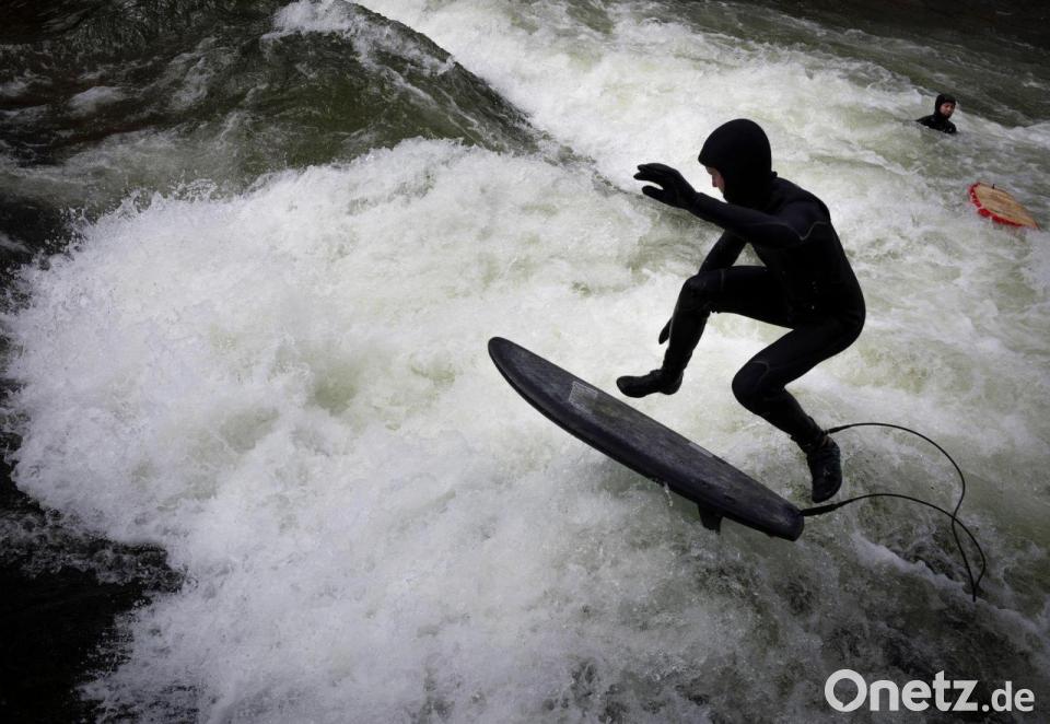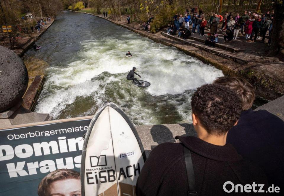 Sie ist wieder da: Kurz vor Ostern ist die Eisbachwelle im Englischen Garten in München wieder auferstanden. Am Karfreitag zog es einige Surfer auf die weltberühmte Welle, die eigentlich seit Monaten verschwunden ist. Und die wiederum zogen zahlreiche Schaulustige an.