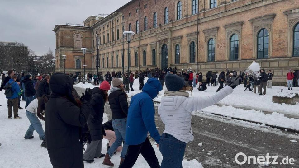 Mehrere Hundert Menschen haben sich nach einem Aufruf in den Sozialen Medien eine Schneeballschlacht an der Alten Pinakothek in München geliefert. Unter anderem auf Instagram hatte nach den heftigen Schneefällen ein Nutzer zu „Deutschlands größter Schneeballschlacht“ aufgerufen.
