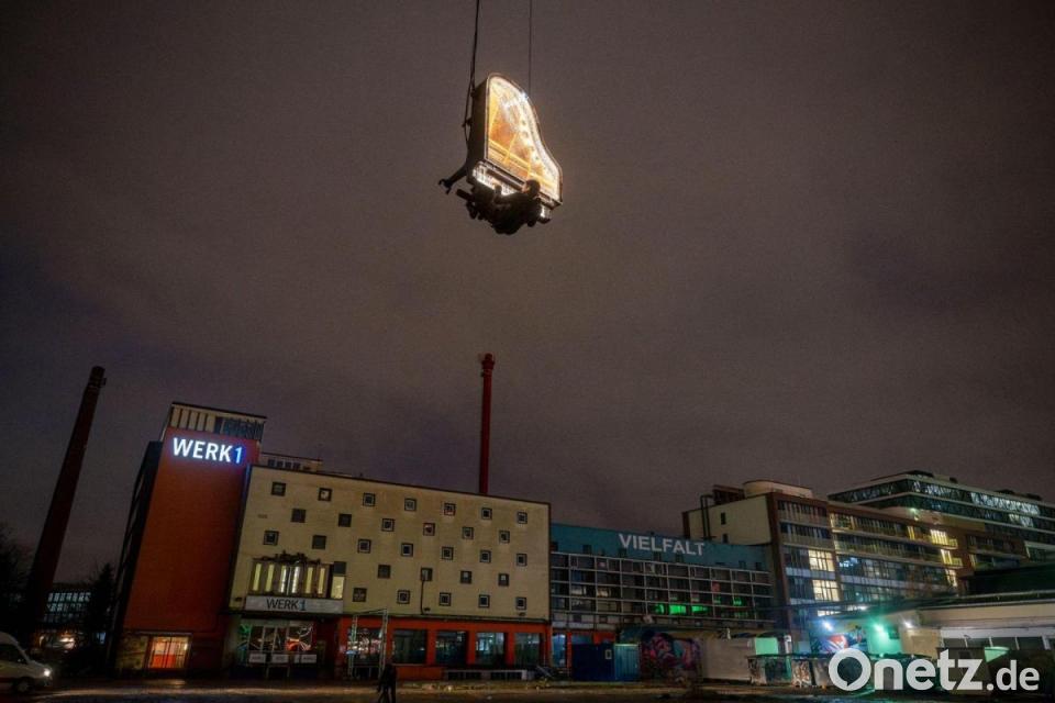 Der Schweizer Pianist Alain Roche will 182 Klavierkonzerte in München geben - und zwar hängend in zehn Metern Höhe. Am Mittwoch gab er einen ersten Vorgeschmack im Werksviertel, wo der neue Konzertsaal entstehen soll. Bis zum 20. April 2024 will Roche dort am hängenden Flügel jeden Morgen vor Sonnenaufgang ein Konzert spielen.
