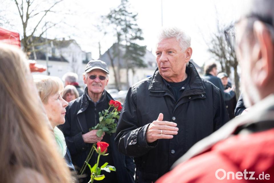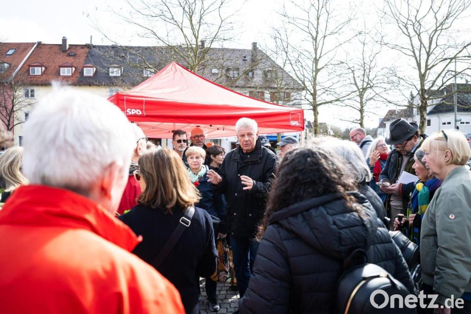 Dutzende schauen am SPD-Stand vorbei, um Reiter direkt zu erleben, bevor sie erneut ihr Kreuzchen machen. Eineinhalb Stunden stellt er sich den Fragen, dann geht es zum nächsten Termin in einem anderen Stadtteil. Es gibt rote Rosen, die Blumen der SPD - unten grün, oben rot, meint eine Genossin.