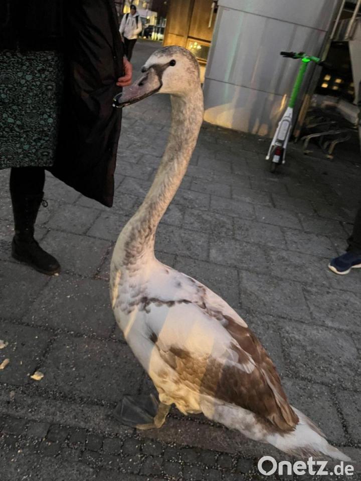 Nach etwa sieben Minuten wurde der Schwan laut einer Polizeisprecherin von der Straße geholt. Zwei Polizisten fingen das Tier mit einer Decke ein. Per Dienstwagen und auf dem Schoß einer Polizistin wurde der Schwan zum Park in der Nähe gebracht. Das Tier war dabei wohl „auch ganz friedlich“.