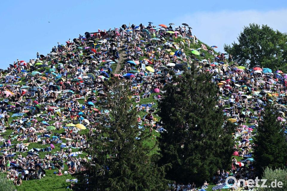 Neben den Konzertbesuchern im Stadion werden am Olympiaberg und auf den umliegenden Wiesen erneut mehrere Tausende Fans erwartet, um aus der Ferne ohne Ticket das Konzert zu verfolgen. Am Samstag waren es laut Polizei rund 25.000 gewesen, die so mitfeierten.
