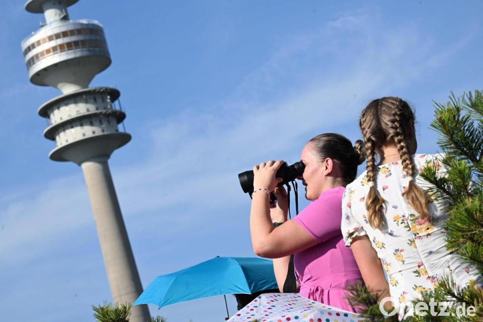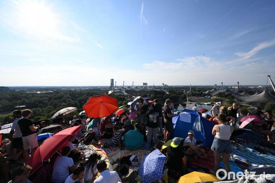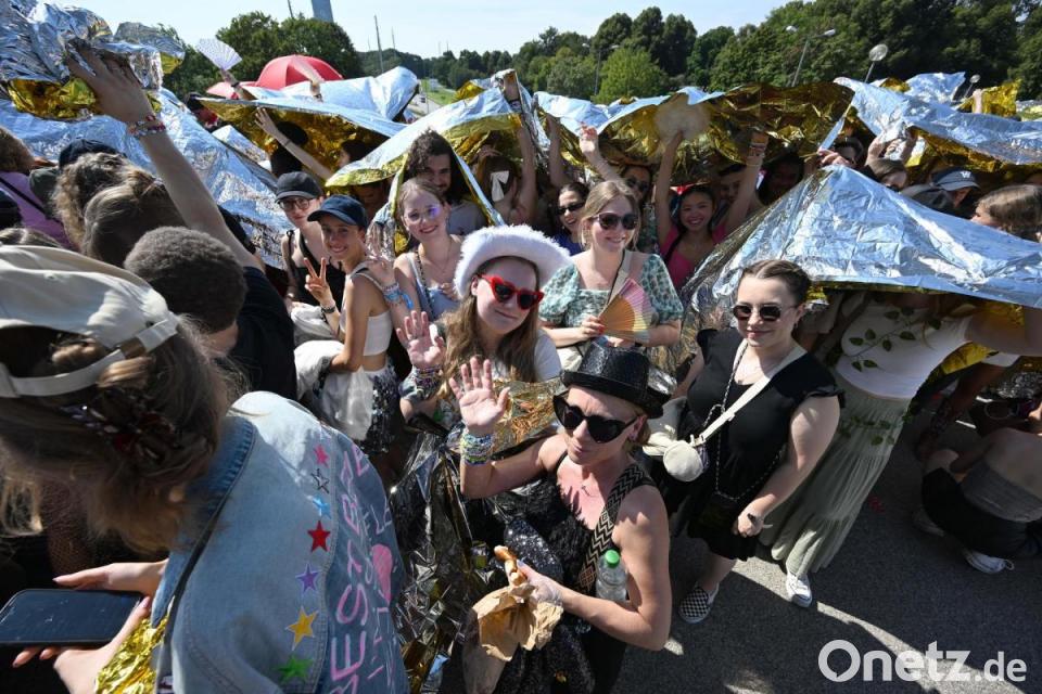 Sie hatten eine lange Wartezeit vor sich: Ab 16 Uhr durften die Besucher in das Stadion. Bei Temperaturen um die 30 Grad haben Fans von Taylor Swift vor ihrem Konzert im Münchner Olympiastadion mehrere Stunden auf den Megastar gewartet. Nach Angaben eines Polizeisprechers verteilte der Konzertveranstalter Tausende Decken zum Schutz vor der Sonne und Unmengen an Wasser an die Fans.