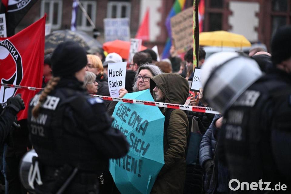 Höcke ist kurz vor einem womöglich richtungsweisenden Landesparteitag der nordrhein-westfälischen AfD derzeit auf Tour durch das größte Bundesland. Am Sonntag hatte er sich mit AfD-Politikern an den Externsteinen im Teutoburger Wald getroffen und anschließend eine Rede beim AfD-Neujahrsempfang im Dortmunder Rathaus gehalten. 3.300 Menschen hatten dort laut Polizei auf dem Friedensplatz gegen den Auftritt protestiert.