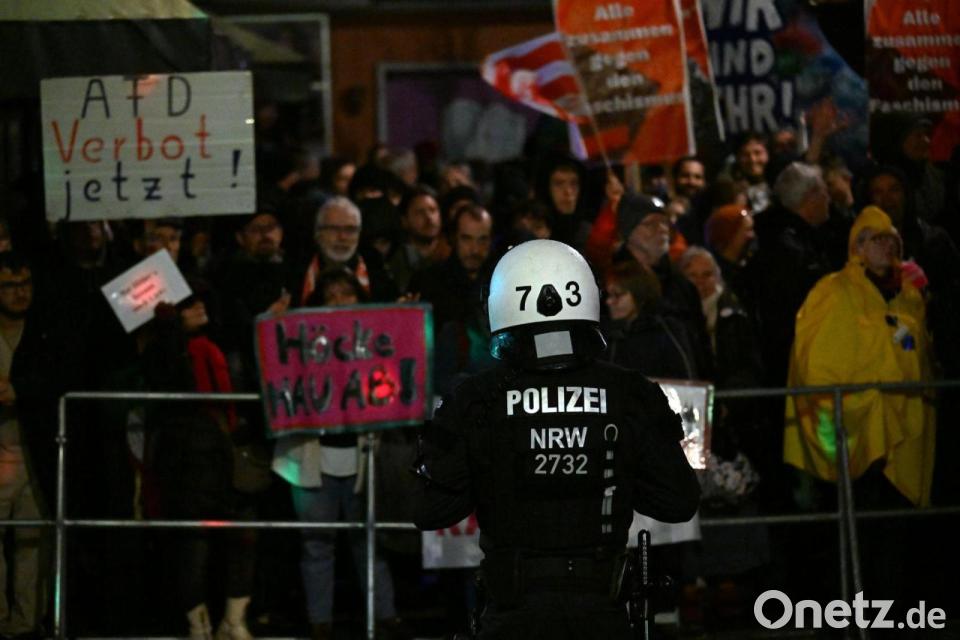 Nach Protesten am Wochenende sind am Abend in Nordrhein-Westfalen erneut Tausende Menschen gegen den Thüringer AfD-Chef Björn Höcke auf die Straße gegangen. Vor einem geplanten Auftritt Höckes in Düsseldorf versammelten sich nach Polizeiangaben mehrere tausend Demonstranten.