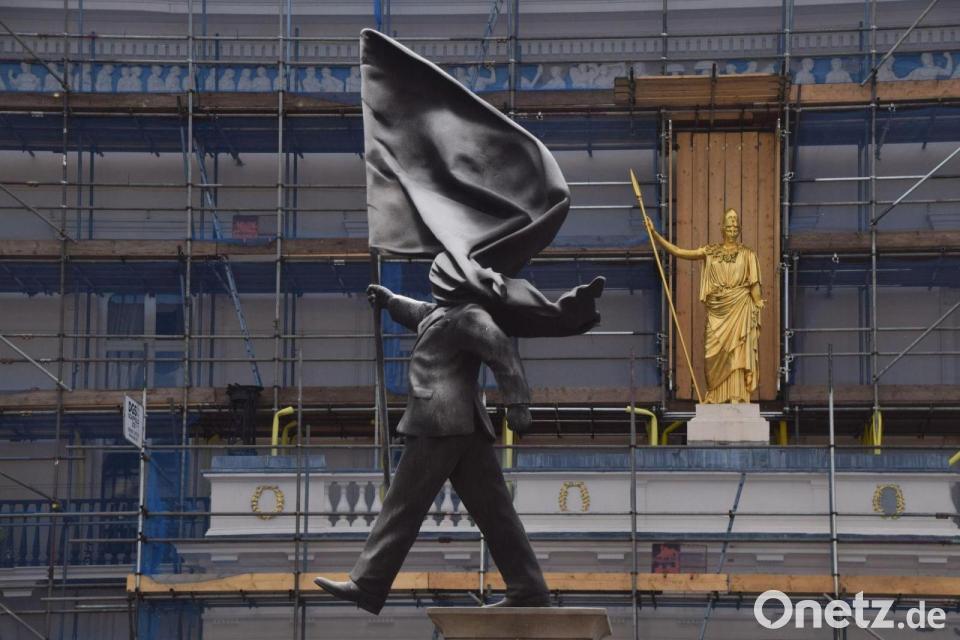 Eine plötzlich aufgetauchte Statue im Zentrum Londons sorgt für Aufregung in der Kunst- und Kulturwelt. Die überlebensgroße Figur scheint von einem Podest in den Abgrund zu schreiten, sie trägt eine große Fahne, die ihr ins Gesicht weht. Als Signatur steht am Fuß des Sockels: Banksy. War es wirklich der weltberühmte, mysteriöse Künstler?