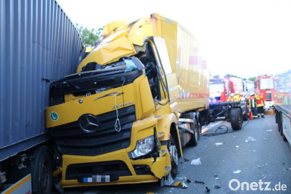 Der Fahrer eines Lkw musste auf dem Seitenstreifen halten, da er den rechten Unterfahrschutz verloren hatte. Der Fahrer ging auf die Autobahn, um das Teil zu beseitigen. Gleichzeitig fuhr der Fahrer eines Lkw auf der rechten Spur und kam laut Zeugenaussagen zu weit nach rechts ab. Dadurch krachte der Lkw nahezu ungebremst in das Pannenfahrzeug und schob dieses zurück auf die Autobahn.