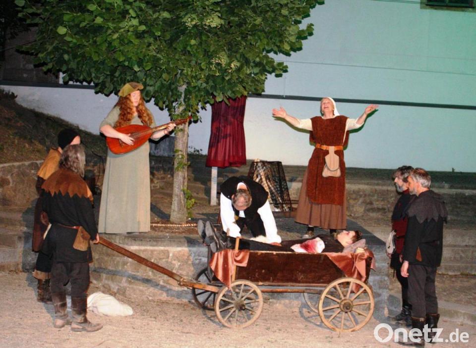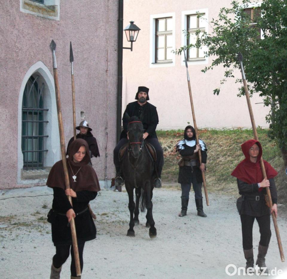 Zum 37. Mal wurde am Samstag das Schauspiel „Vom Hussenkrieg“ auf die Neunburger Burghof-Bühne gebracht. Regisseur Cornelius Gohlke, der heuer zum zweiten Mal das im Spätmittelalter angesiedelte Geschehen inszeniert, baute die Linie „Antikriegsstück“ aus. Von der Schwarz-Weiß-Malerei mit den „bösen Hussiten“, die nachweislich von 1419 bis 1434 in die Oberpfalz einfielen, ist man mittlerweile weit entfernt. Das Publikum nimmt diese thematische Ausgewogenheit gerne auf und folgt mit Interesse den Ausführungen der fünf Erzähler, die zwar eine Rolle im Spielgeschehen haben, sich aber immer wieder erklärend und interpretierend an das Publikum wenden. Sie machen hierbei die geschichtlichen Hintergründe deutlich, warum es zu den Hussitenkriegen kam und dabei ist die Schuld keineswegs nur bei den „hussitischen Ketzern“ zu suchen, wie die Erzähler überzeugend vermitteln.