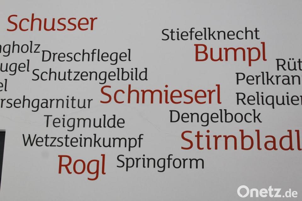 Im Informationsraum des Schaudepots empfängt den Besucher auch eine "Wortwolke": An der Wand stehen mundartliche oder bäuerliche Begriffe, wie etwa Schusser oder Dengelbock. Denn auch Wörter sind dem Wandel der Zeit ausgesetzt, alte sterben aus, neue kommen hinzu; im selben Maß wie alte Berufe und Fertigkeiten aussterben oder Gegenstände nicht mehr gebraucht werden, verschwinden auch ihre Bezeichnungen. Johanna Ullmann-Süß hat deshalb ein weiteres Projekt im Hinterkopf: "In unserem digitalen Depot könnten wir die jeweiligen Dialektbegriffe zu den Objekten erfassen." Sie denkt an eine Zusammenarbeit mit Schulen. "Die Schüler könnten mit ihren Großeltern reden. Denn auch die Mundart verändert sich ja." Dabei sei sie gerade in der Oberpfalz prägend und vermittle viel vom regionalen Charakter. Ullmann-Süß würde gerne auch ein spezielles Gästebuch im Schaudepot auflegen: "Dort könnten wir die Besucher fragen, wie heißt das bei Ihnen und wo kommen Sie her?"