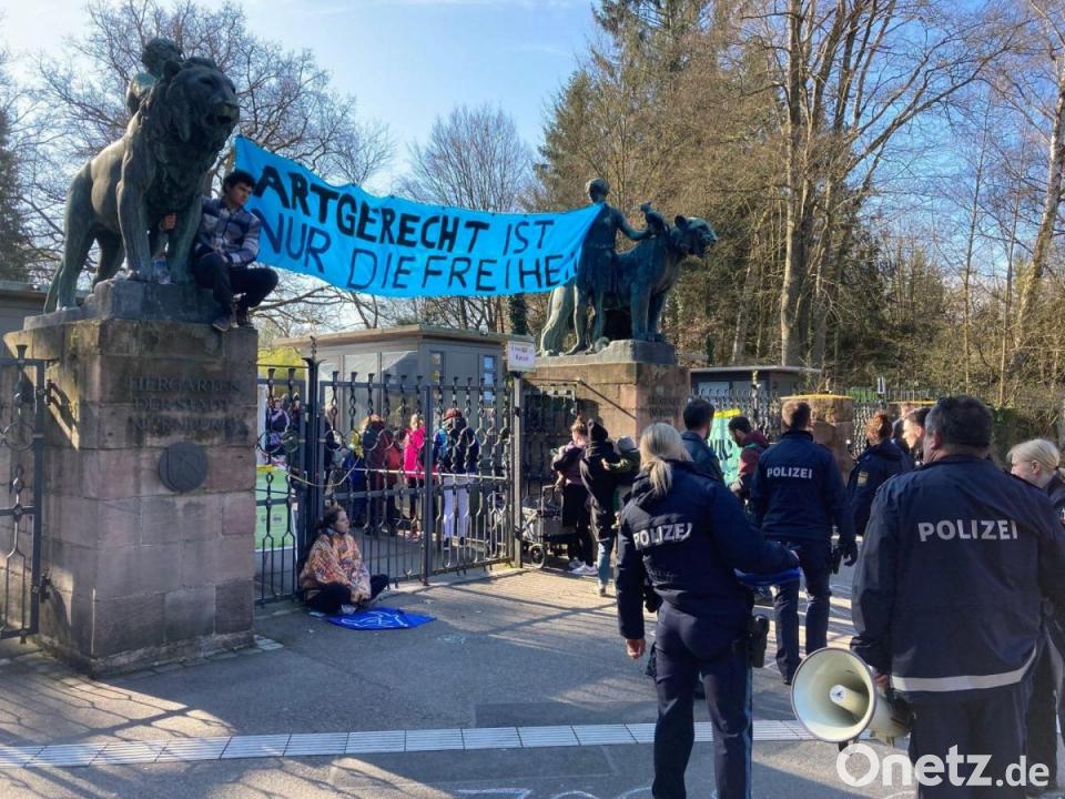 Laut Polizei kam es aufgrund der Aktion zunächst zu keinen größeren Schlangen am Eingang des Zoos. Zu Beginn hätten Besucherinnen und Besucher noch über ein kleines Tor an der Seite in den Park gelangen können, sagte die Sprecherin. Dieses sei dann von den Aktivisten aber auch blockiert worden. Auf eine Ansprache durch die Polizei hätten die Demonstranten zunächst nicht reagiert. Die Polizei war mit mehreren Streifenbesatzungen vor Ort.