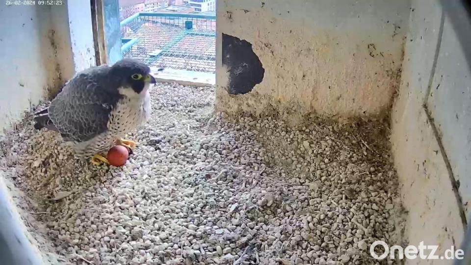 Das Wanderfalken-Paar auf der Nürnberger Kaiserburg hat ein erstes Ei in seinem Horst. Über eine Webcam können Vogelfans beobachten, wie das Weibchen brütet, das Ei aber auch immer wieder für längere Zeit verlässt. Erst ab dem letzten oder vorletzten Ei werde sie das Gelege vollständig bebrüten, schrieb die Regierung von Mittelfranken am Montag auf der Projekt-Homepage. Medien hatten zuvor berichtet.