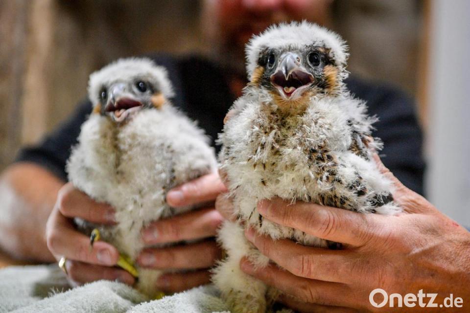 In der ersten Woche der meist 35-tägigen Nestzeit würden die Jungvögel allein von dem Weibchen „gehudert“, so der Fachbegriff. In dieser Zeit sei der Vater damit beschäftigt, Beute zu besorgen, wie Böger erläuterte. Ab der zweiten Woche stelle die Mutter dann das „Hudern“ ein und beide Elternvögel versorgten die Jungvögel abwechselnd mit Nahrung.